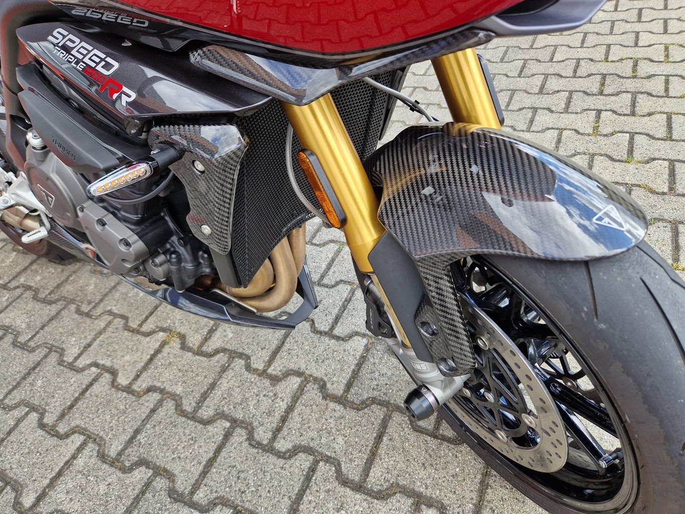 Speed Triple 1200 RR in sehr gutem Zustand Inspektion neu LED Lauflichtblinker Schalldämpferhalterung Tankpad Rahmenschützkit Gabelprotektoren Kühlerschutz Bremssattelschutz Reglerschutz Tankring SW-Motech Carbonteile hinteres Schutzblch Auspuffverkleidung Hitzeschutz Kennzeichenhalter Kettenschutz unten Ritzelabdeckung Heck-Unterverkleidung Ständig Ankauf und Inzahlungnahme von Fahrzeugen Gern unterbreiten wir ein individuelles Finanzierungsangebot