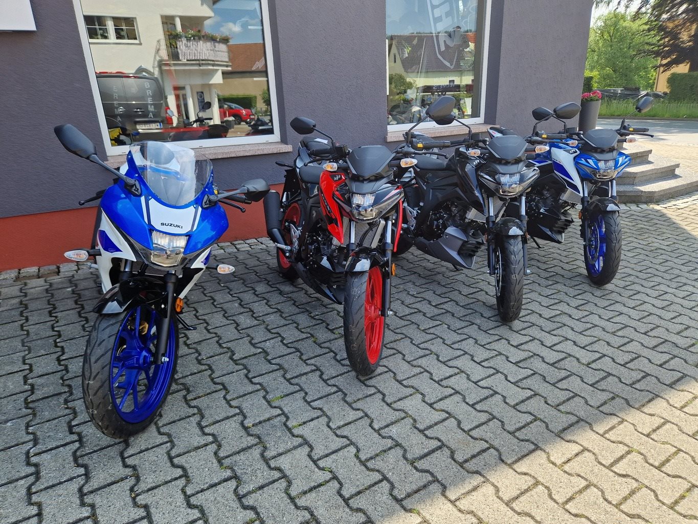 GSX-S125 Ihr schnittig-schlankes Design verbessert Handling und die Fahrkontrolle. Maximale Leistungsausbeute und Verbrennungseffizienz. Die stärkste Beschleunigung in der Klasse - bei niedrigem Kraftstoffverbrauch. Niedrige Sitzhöhe Ständig Ankauf und Inzahlungnahme von Fahrzeugen Gern unterbreiten wir ein individuelles Finanzierungsangebot